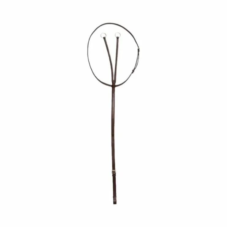 • La martingale à anneaux est un enrênement constitué de 2 courroies : l’une se fixe d’un côté à la sangle et de l’autre côté elle se sépare en 2 parties munies d’anneaux qui coulisseront dans les rênes.