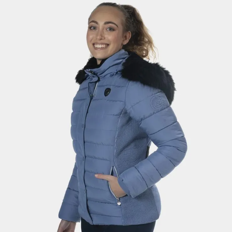 - Capuche amovible, bordée d’une large fourrure synthétique amovible.