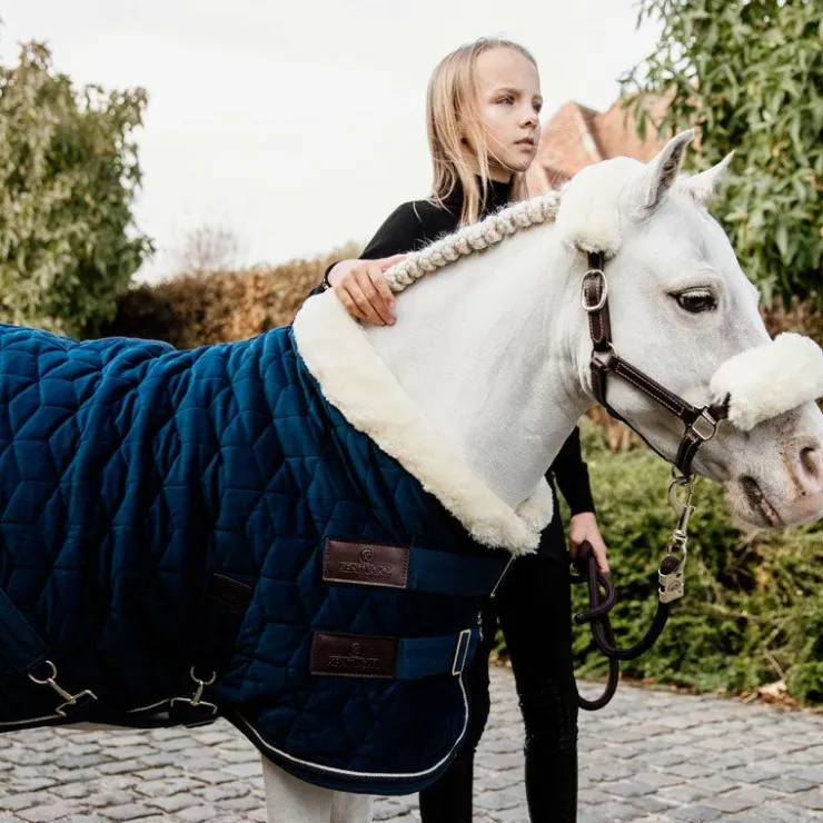 - L’extérieur de la couverture est composé d’un tissu en velours doux et chic et d’une couche matelassée sophistiquée. Grâce à la couche matelassée en « cube », il est beaucoup plus difficile pour les chevaux de déchirer la couverture.