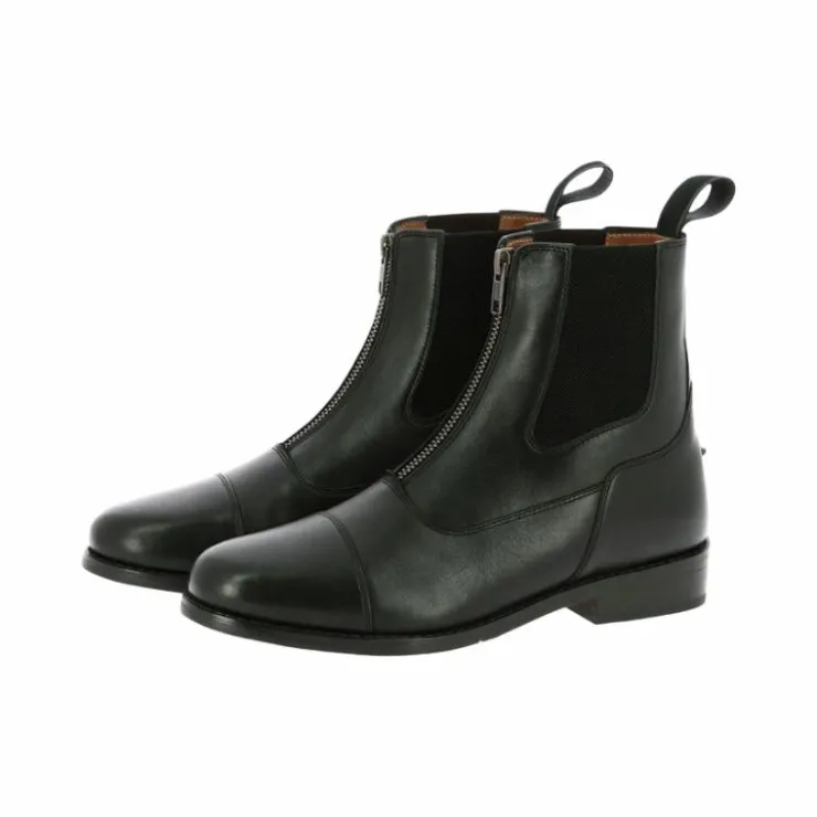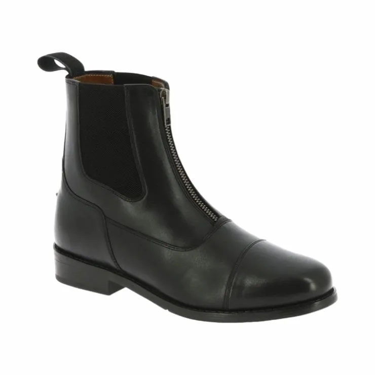 - Boots légères en cuir vachette avec fermeture à glissière frontale et soufflets élastiques