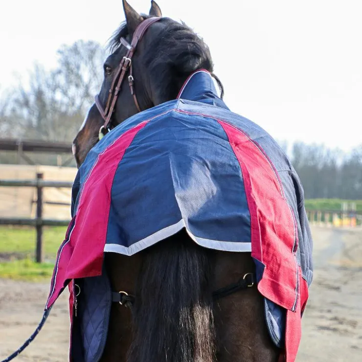 - Fermeture de poitrail par fixation rapide, renforcée par bandes auto-agrippantes, avec indication de la taille sur patch en caoutchouc.