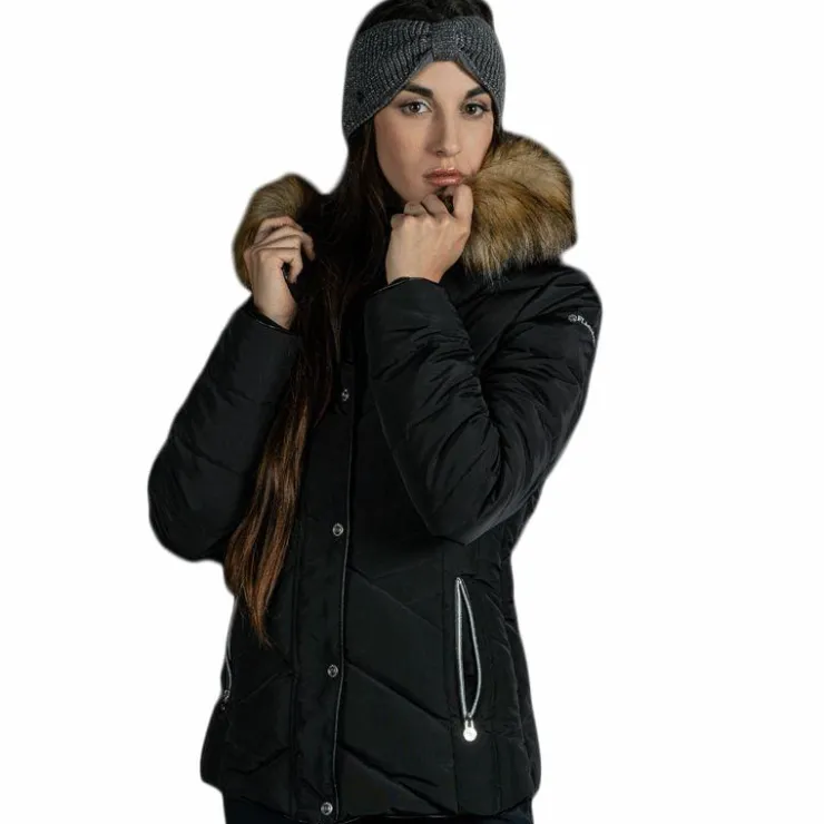 - Intérieur du col et de la capuche, doublé poils synthétiques longs et doux. Fermeture frontale double curseur sous rabat pression et poches avant zip, galonnées d’un liseret en silicone et avec tirettes F&C métalliques