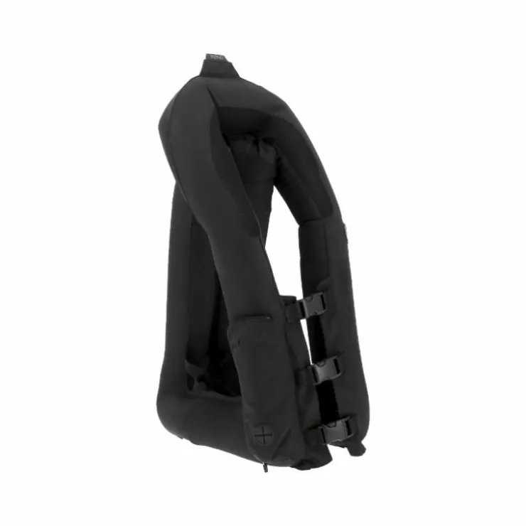 • Lorsque le gilet se gonfle, il va venir absorber les chocs, amortir le cavalier et maintenir sa tête dans la chute