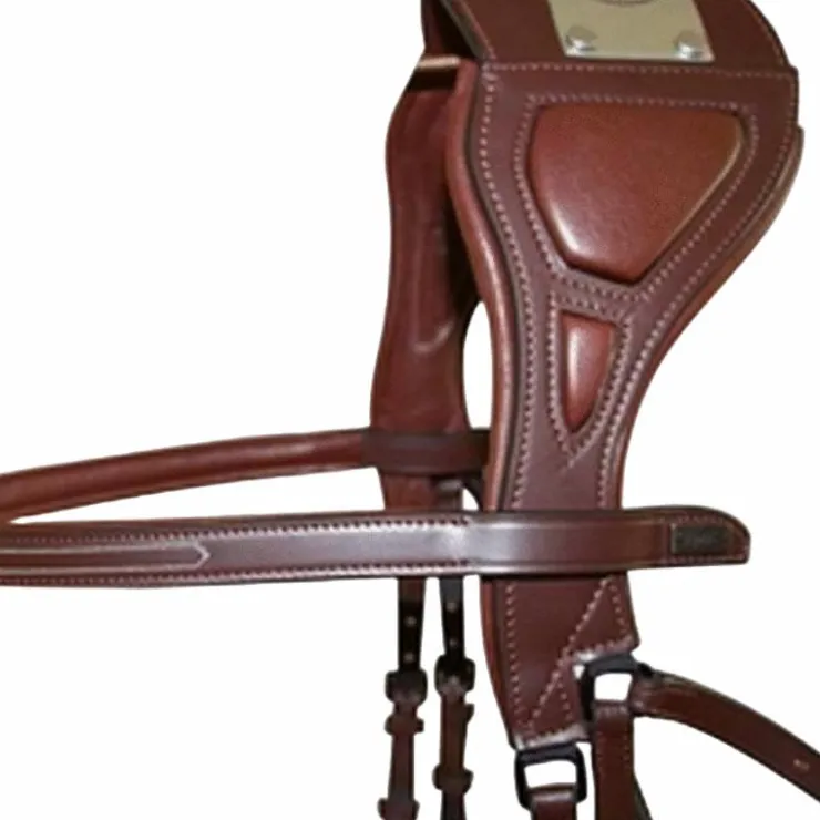 • Cuir Italien de grande qualité, bouclerie en acier inoxydable noir, détails en coutures blanches sur le frontal et la muserolle.