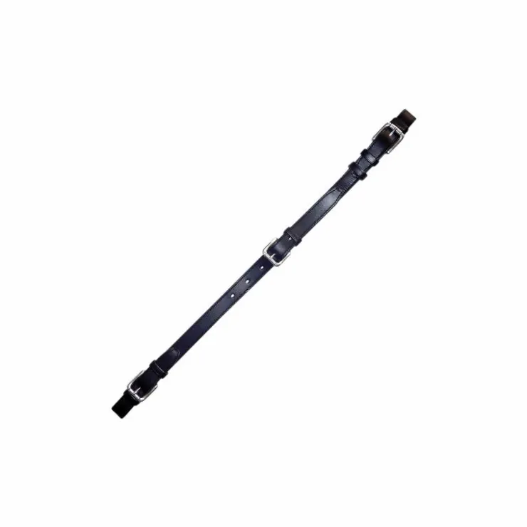 - Réglage central par boucle et fixation sur étriers par boucles en laiton chromé de part et d’autre