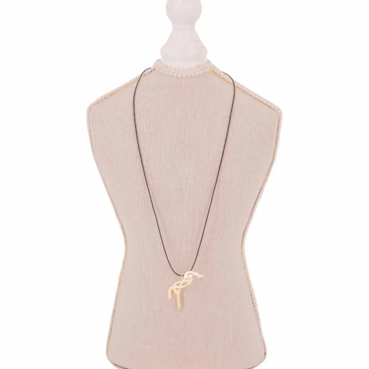 • Collier équestre doré, suspendu à un fil de coton noir