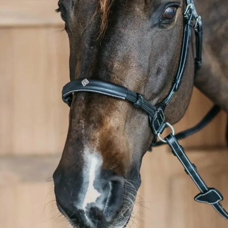 • Muserolle innovante avec deux noeuds, favorisant une communication précise entre le cheval et le cavalier, améliorant ainsi davantage la précision