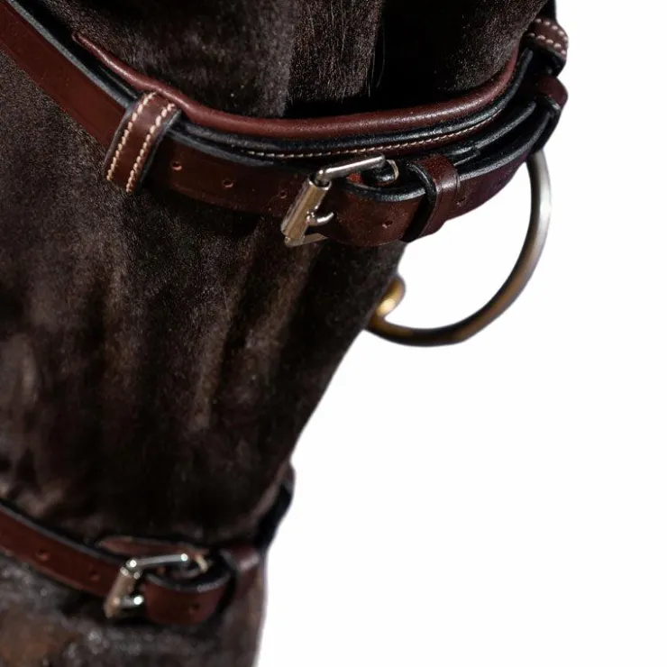 • Têtière dotée d’un unique montant où vient s’attacher le montant de muserolle ainsi que le porte mors