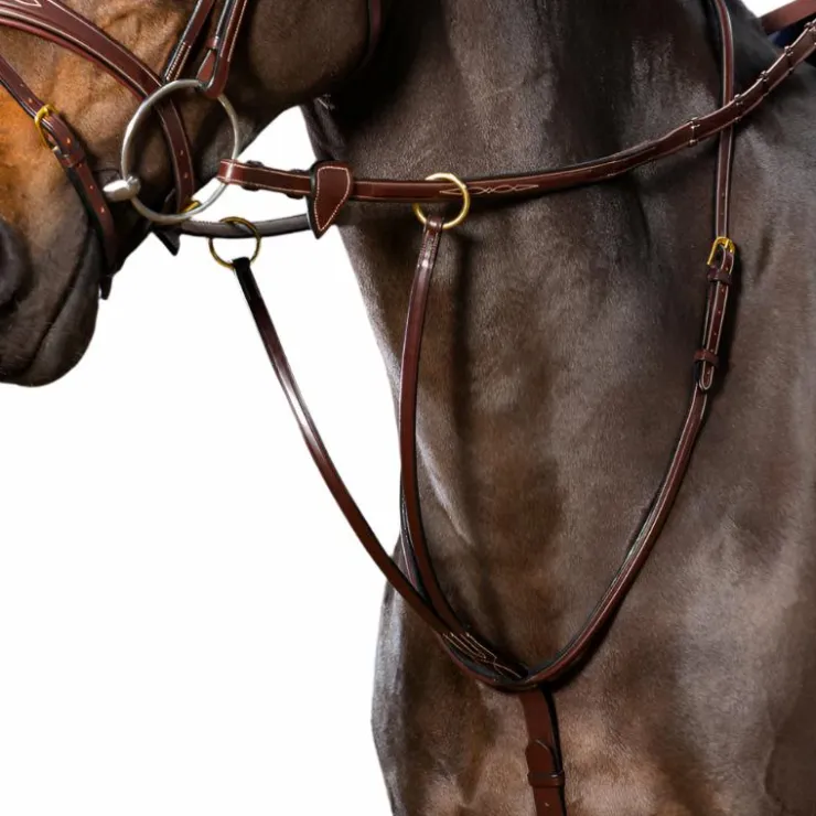 • Martingale à anneaux en cuir bombé carré avec surpiqûre décorative