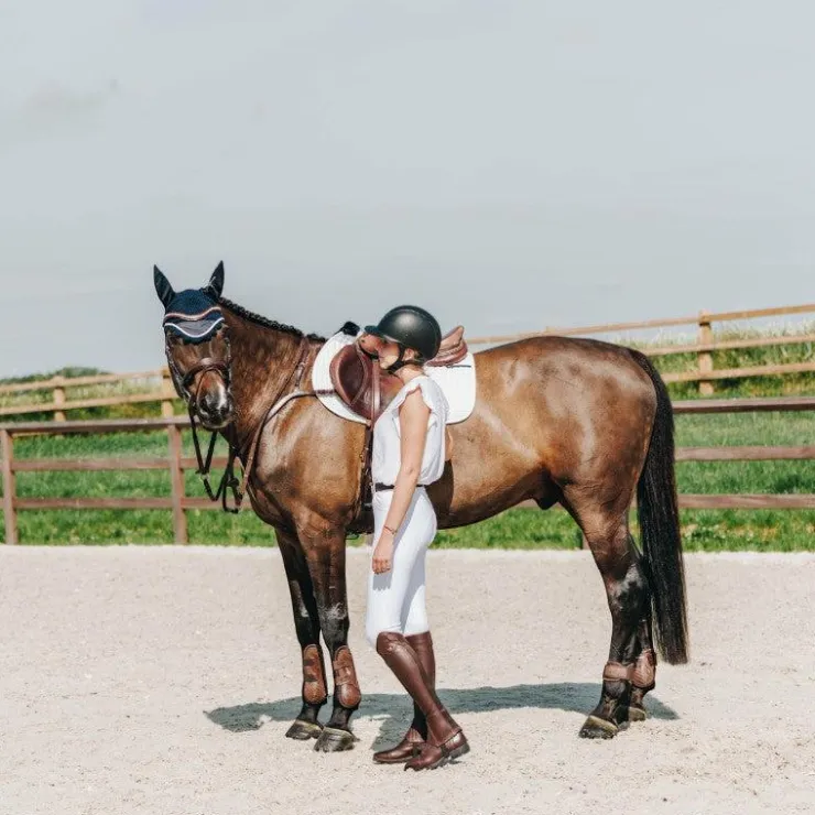 • en haut de la chaps, l’épingle dorée Dy’on ajoute une touche subtile mais distinctive de style et de classe pour la tenue de concours