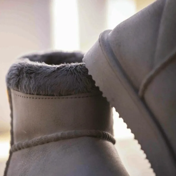 - L’intérieur est en fausse fourrure très douce pour apporter une bonne chaleur aux pieds. À l’extérieur, une pâte en similicuir est fixée sur le revers de la boots où le logo Pénélope y est estampillé. La semelle est épaisse pour une isolation supplémentaire du froid.