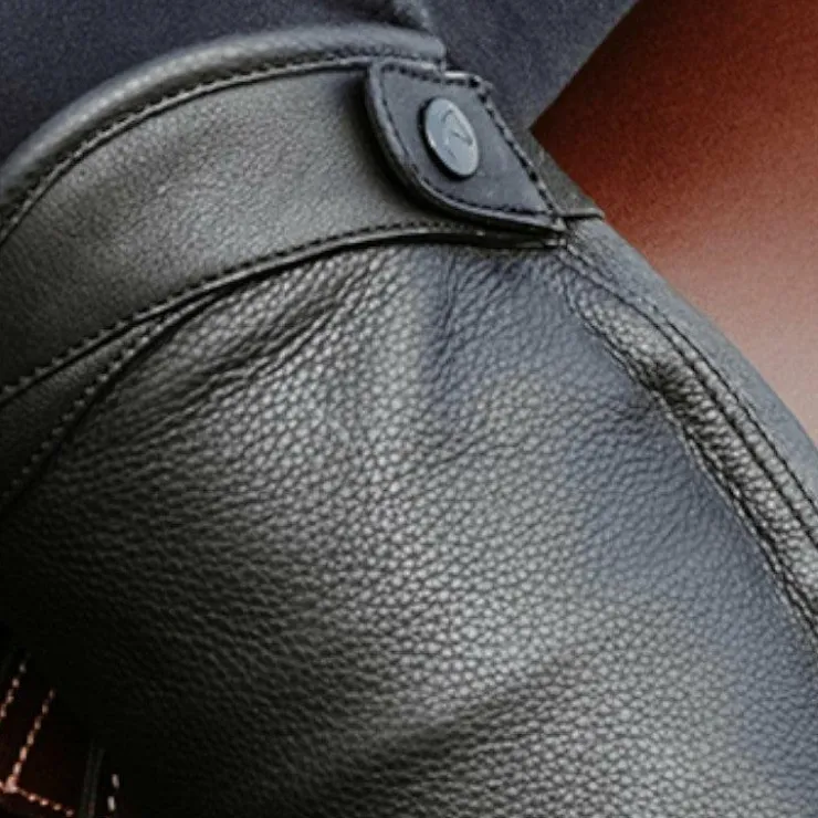 • Pattes en cuir à pression en haut et en bas du zip