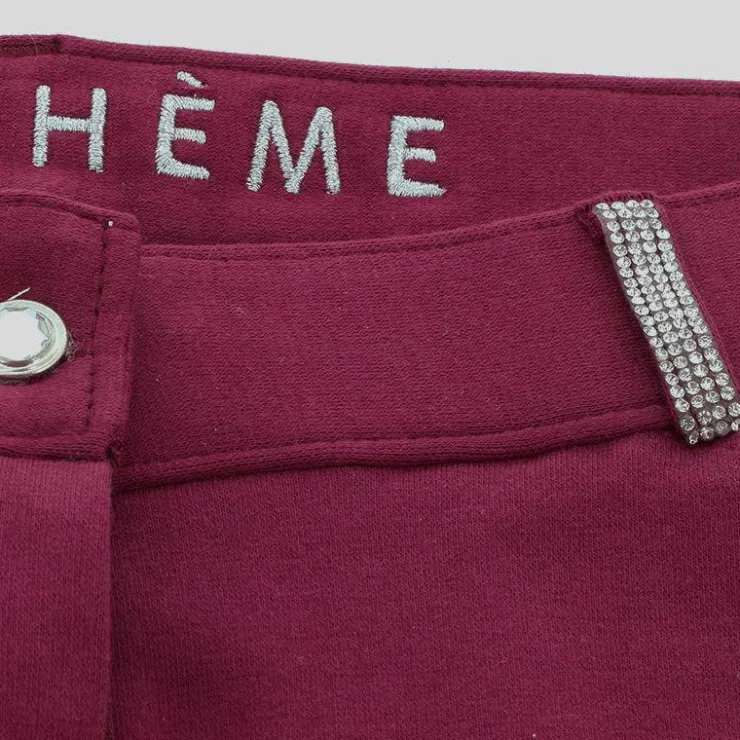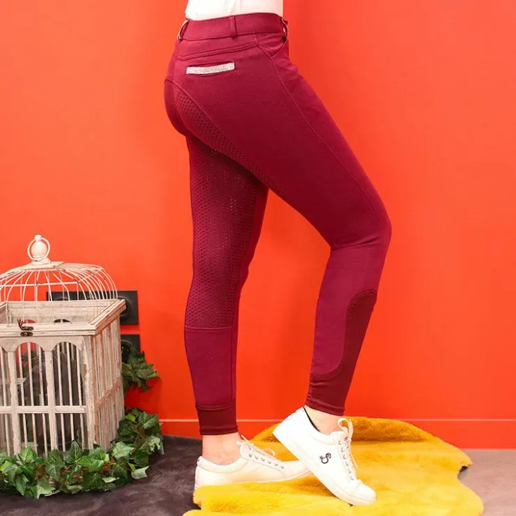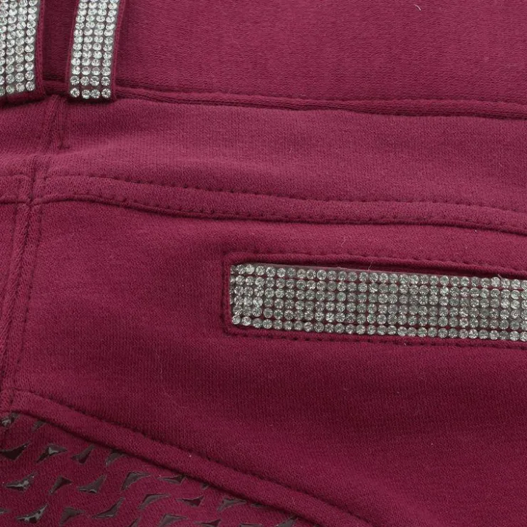 Ce pantalon a une matière assez épaisse, mais très souple. Il est parfait pour une cavalière qui souhaite être confortable avec de jolis détail strass. Il dispose d’un full grip, de fausses poches derrière et deux vraies à l’avant. Vous pouvez prendre votre taille habituelle. Ici porté en taille 36.