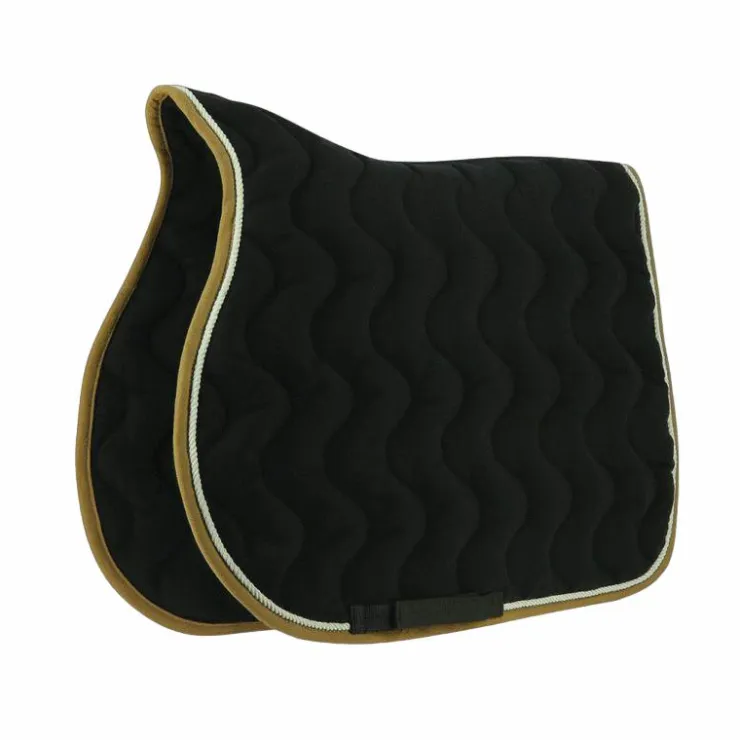 - Tapis de selle 100% coton doux, matelassé polyfill 480g/m² décoré d’une tresse de 5,5 mm de diamètre.