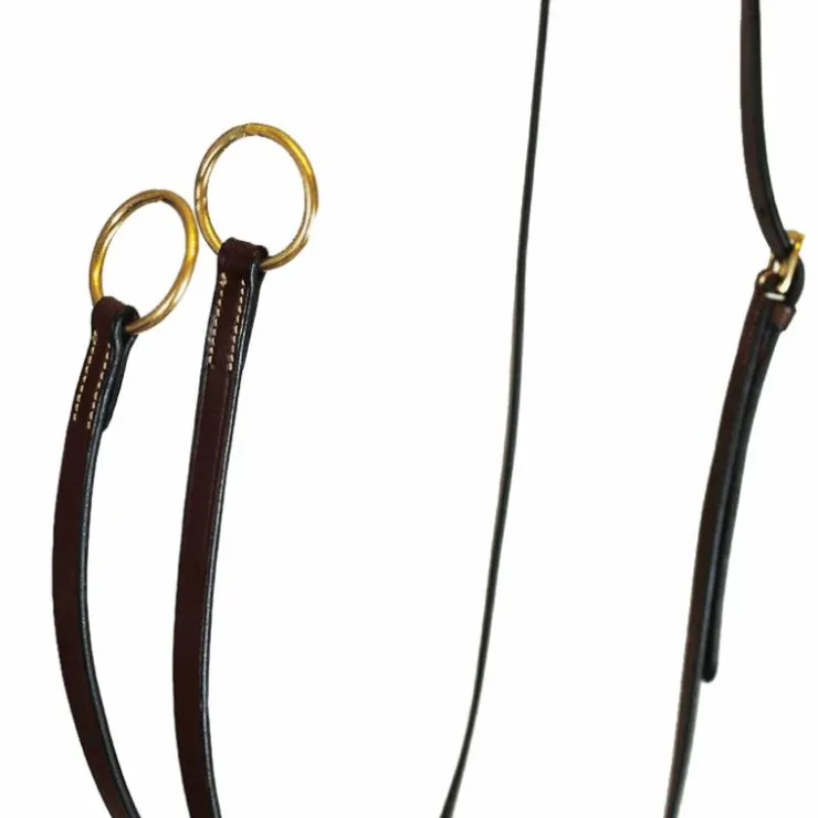 • La martingale à anneaux est un enrênement constitué de 2 courroies : l’une se fixe d’un côté à la sangle et de l’autre côté elle se sépare en 2 parties munies d’anneaux qui coulisseront dans les rênes.