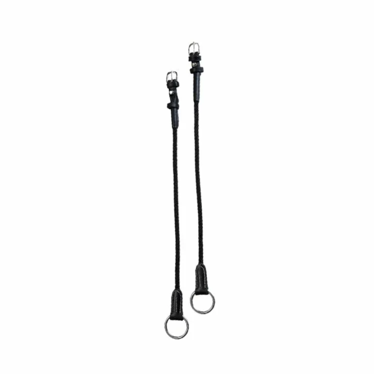 • Les montants de releveur cuir/corde Éric Thomas Pro ont des boucles en inox sur coloris noir ou laiton sur coloris havane.
