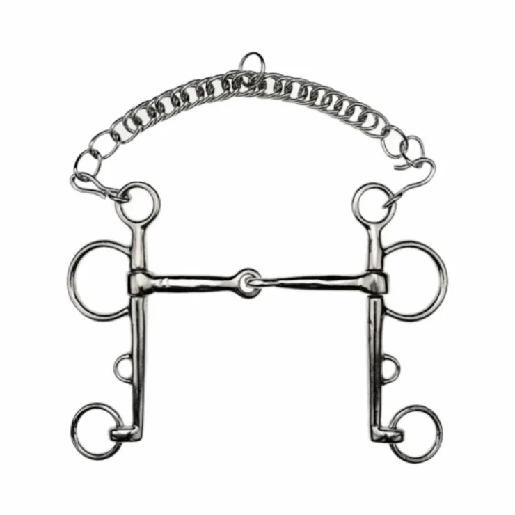 Le pelham peut être utilisé avec 2 ou 4 rênes. De même, il est possible de l’utiliser sans gourmette pour adoucir son action sur la bouche.