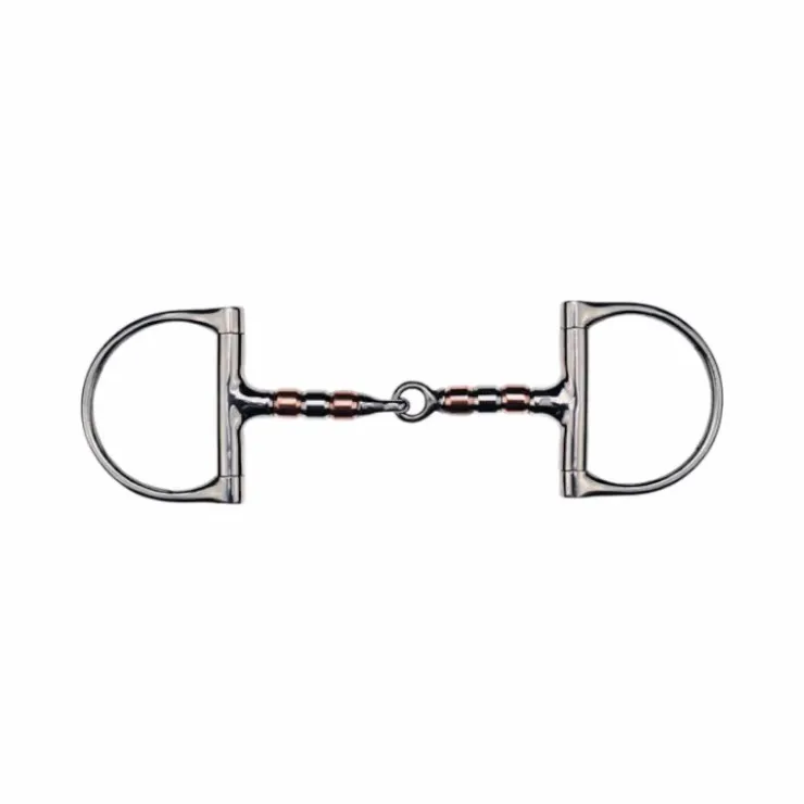 • Mors avec canons pleins en inox avec rouleaux cuivre décontractant.