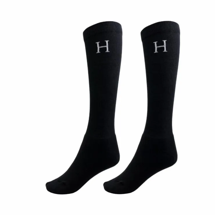 • H en fils pailletés sur le côté extérieur de la chaussette