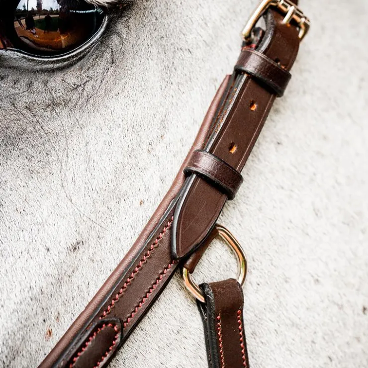 • Lanière inférieure de la muserolle dotée d’une courbe innovante permettant au bridon de s’adapter plus confortablement autour du mors
