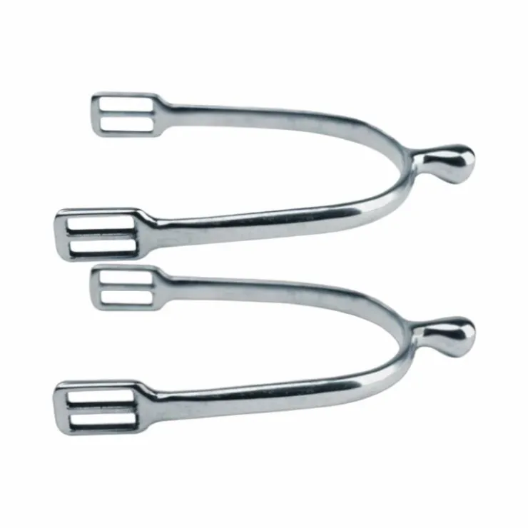 - Eperon court dont la tige se termine par une boule. Ce type d’éperon est plus adapté pour les cavaliers qui commencent à monter avec des éperons mais aussi avec un jeune et/ou sensible cheval.