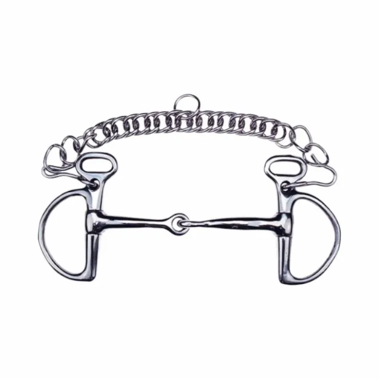 - Le mors Espagnol s’utilise avec une gourmette. Il se présente comme un mors classique mais les anneaux sont en forme de demi-lune munie d’encoches sur lesquelles on vient fixer les rênes.