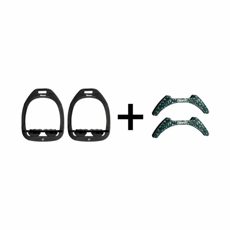 • Pack Étriers Green Composite plat ultra grip noir/ noir/ noir + Stickers Flex On Cottage vert
