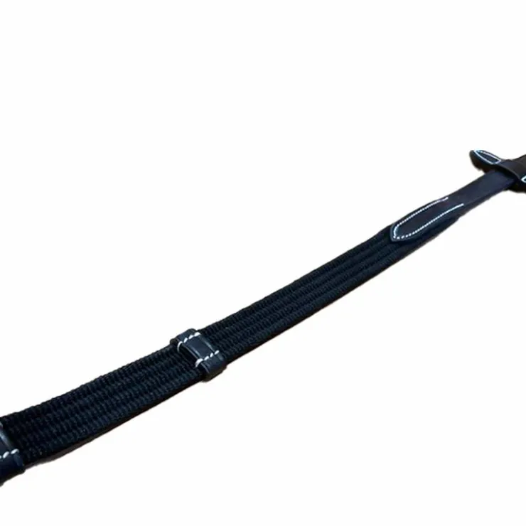 • Toile cousue très résistante avec arrêtoirs en cuir pour aider le cavalier à ne pas perdre ses rênes