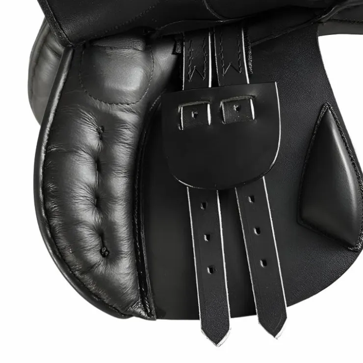- Selle mixte d’apprentissage en cuir de buffle végétal avec siège et avancées de quartiers en cuir vachette antidérapant favorisant l’acquisition d’une bonne assiette