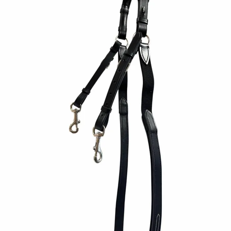 • Le collier de chasse empêche la selle de glisser vers l’arrière. Il est donc souvent utilisé pour le saut d’obstacles, le concours complet ou pour des chevaux très ronds. Ils sont également souvent utilisés pour y fixer une martingale. La martingale empêche les chevaux de lever la tête trop haut. Lorsque la martingale est attachée au harnais, elle a ainsi une double fonction