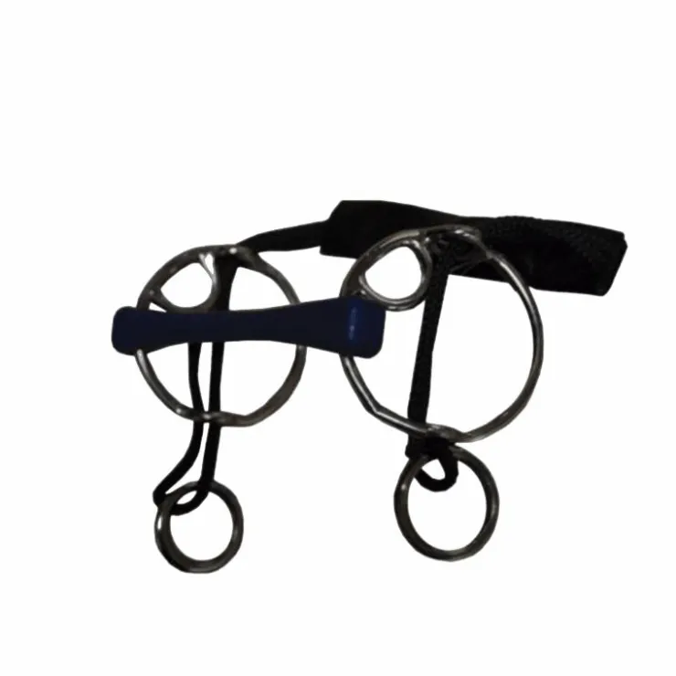 - Le mors est fixé sur le filet par des montants en corde coulissants à l’intérieur de deux encoches situées sur les anneaux. Les montants de releveur ont une action sur la nuque par l’intermédiaire de la têtière du filet.