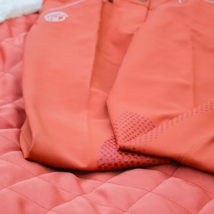 - L’intérieur des genoux est doté d’un fin grip qui améliore la fixité du cavalier sans le bloquer.