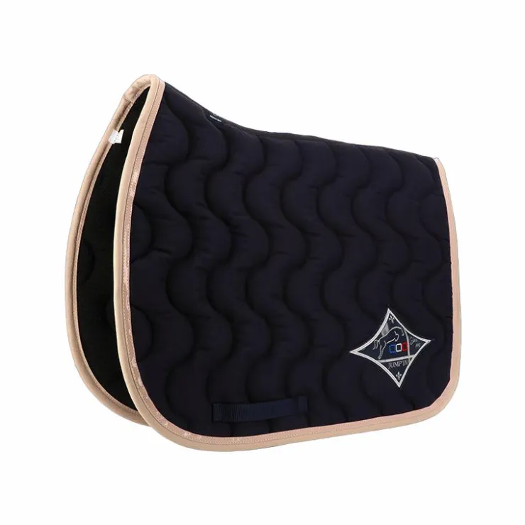 - Tapis de selle Jump’In marine, liseré verni champagne et bordure beige
