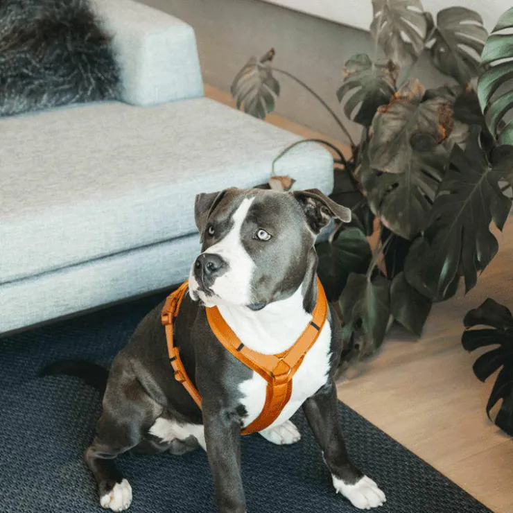 - Le harnais peut être ajusté au niveau du cou et du ventre, ce qui vous permet de l’adapter à la forme la plus sûre et la plus confortable pour votre chien.