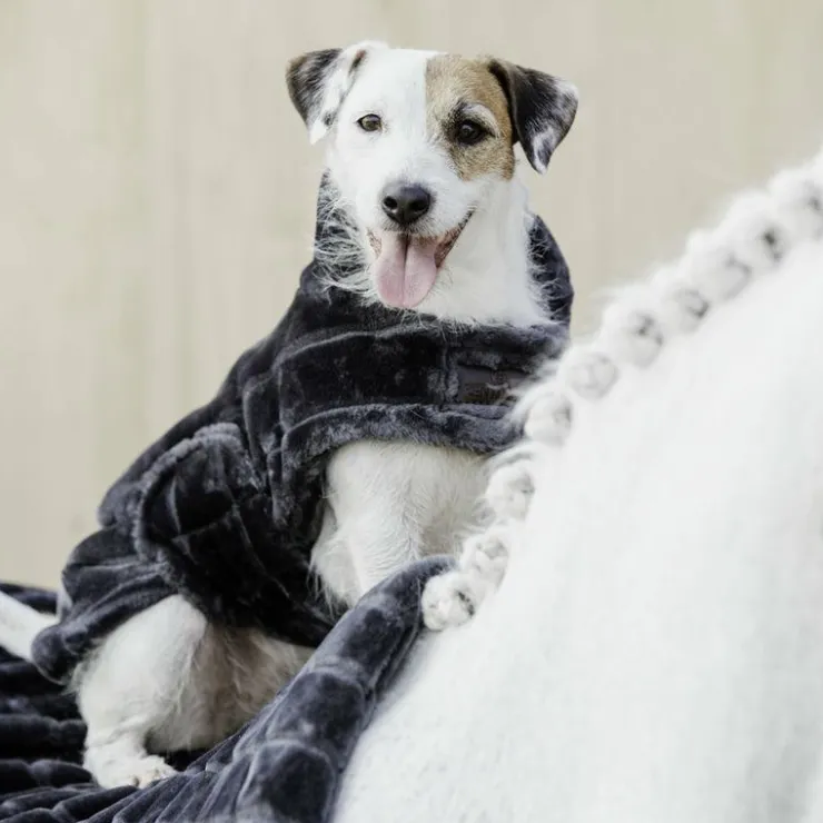 - L’intérieur comme l’extérieur sont en fausse fourrure, ce qui gardera votre chien au chaud, à l’aise et tout ça avec beaucoup de style !