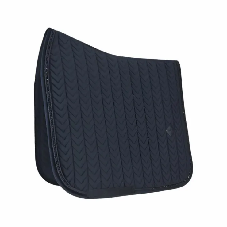 - Le tapis de selle Velvet Pearls n’a pas de sangles gênantes à fixer à la selle. Pour rester en place sous la selle, l’intérieur du tapis est structuré en gaufre. Cet intérieur gaufré sèche rapidement et offre un effet amortissant sous la selle.