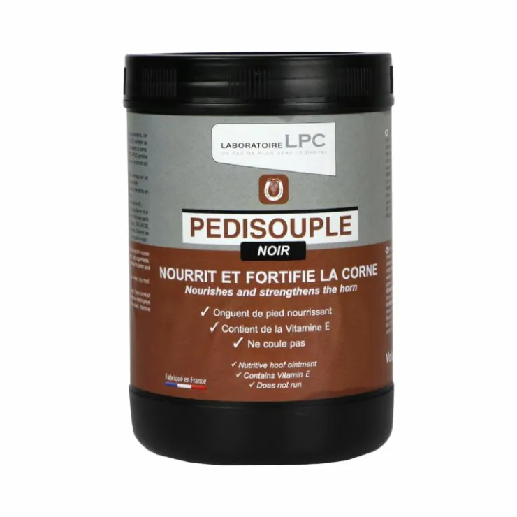 - Pédisouple Noir contient de l’huile végétale et des matières grasses animales qui nourrissent la corne