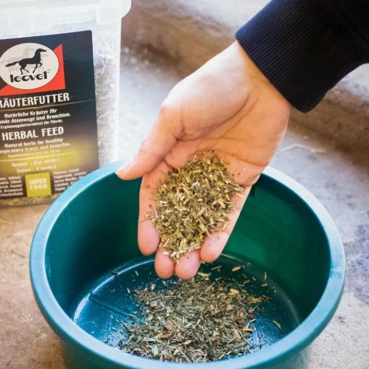Petit cheval : 2 x par jour 1 tasse d’Aliment complémentaire aux herbes Leovet (soit environ 100 g par jour).