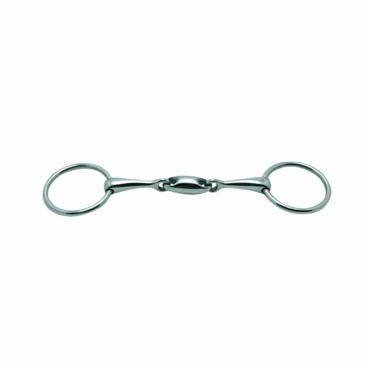- Ce mors 2 anneaux est fin et ses petits anneaux évitent toute gêne lors d’une utilisation avec les branches d’un mors de bride.