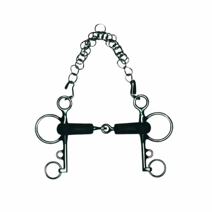 - Le Mors Pelham brisé Metalab Caoutchouc souple est plutôt destiné pour les chevaux ayant un port de tête haut ou difficiles à arrêter avec une bouche sensible.