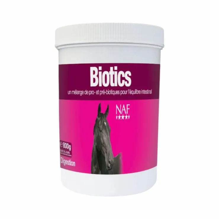 - Biotics est une formule pour soutenir la repopulation microbienne naturelle de l’intestin des chevaux.