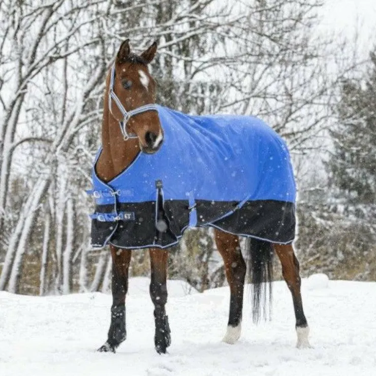 - Equipée d’un très grand rabat de queue imperméable avec bande réfléchissante intégrée, de plis d’aisance, d’un pad de garrot en mouton synthétique à l’intérieur de la couverture, de sursangles croisées basses et de courroies de cuisses
