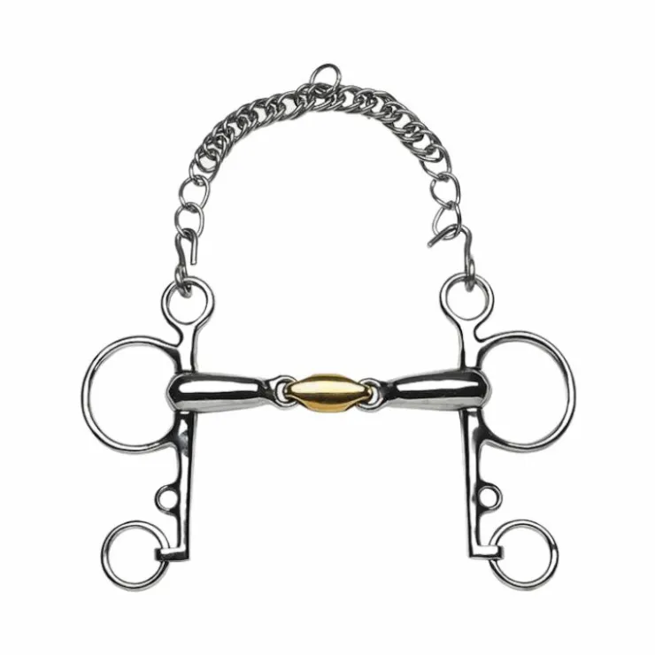 Le pelham peut être utilisé avec 2 ou 4 rênes. De même, il est possible de l’utiliser sans gourmette pour adoucir son action sur la bouche.