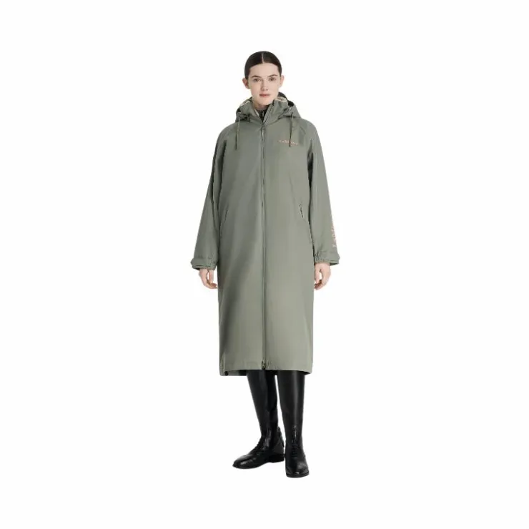 • Manteau de pluie pleine longueur, offrant un indice d’imperméabilité de 12 000 mm, et de respirabilité de 10 000 MVP