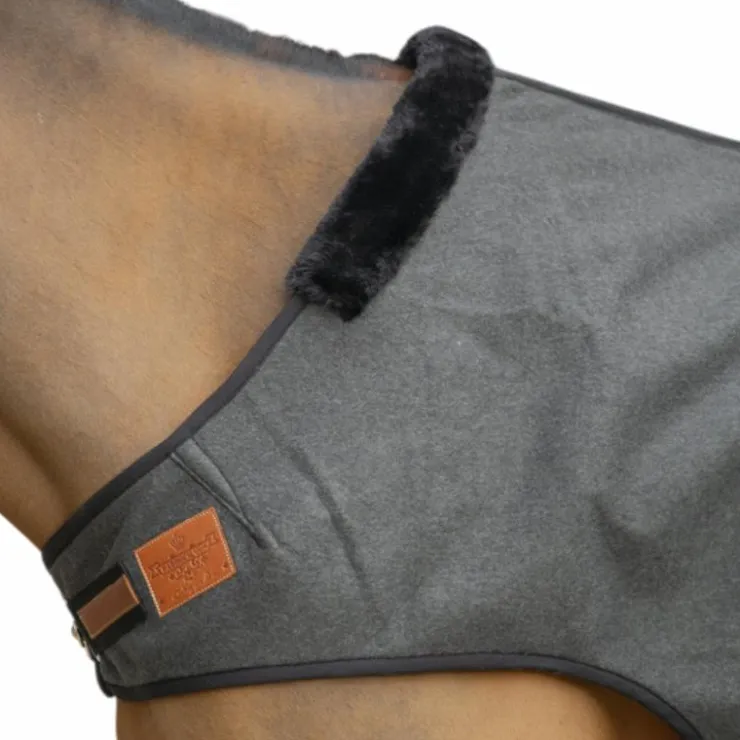 • Renfort en fausse fourrure noire le long de l’encolure, qui protège une large zone autour du garrot tout en apportant une touche chic