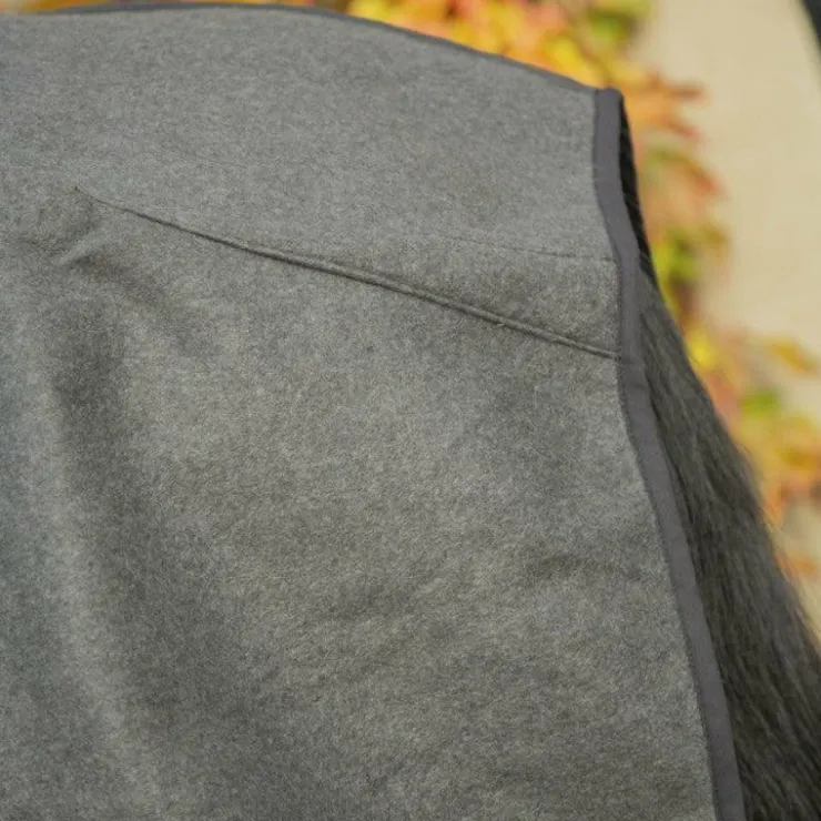 • Couverture au touché laine avec un galon noir et une tresse de queue noire de type brandebourg