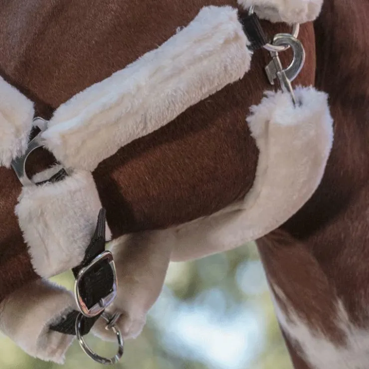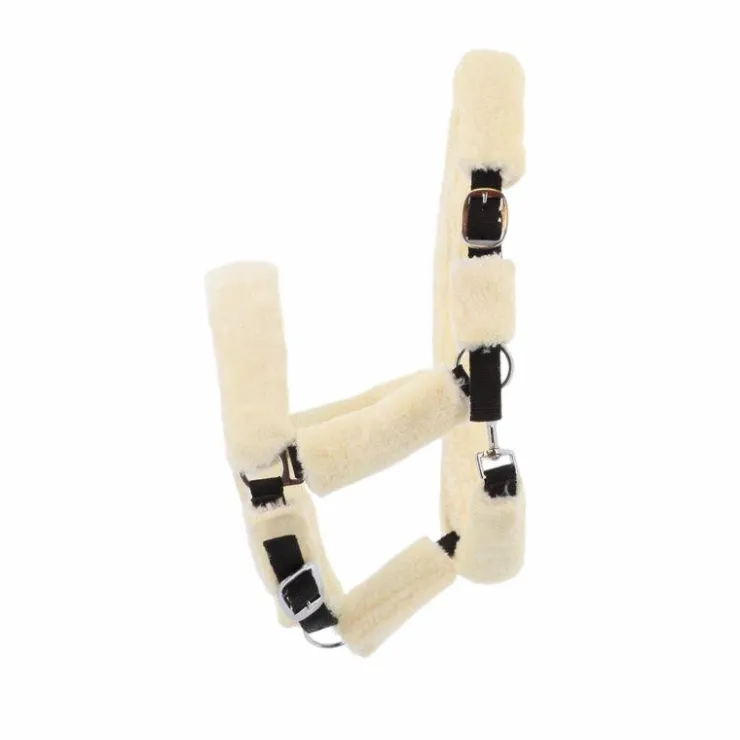- En polypropylène double épaisseur au toucher doux, avec têtière, montants et muserolle doublés mouton véritable