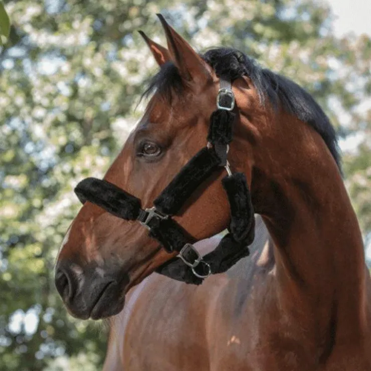 - En polypropylène double épaisseur au toucher doux, avec têtière, montants et muserolle doublés mouton véritable