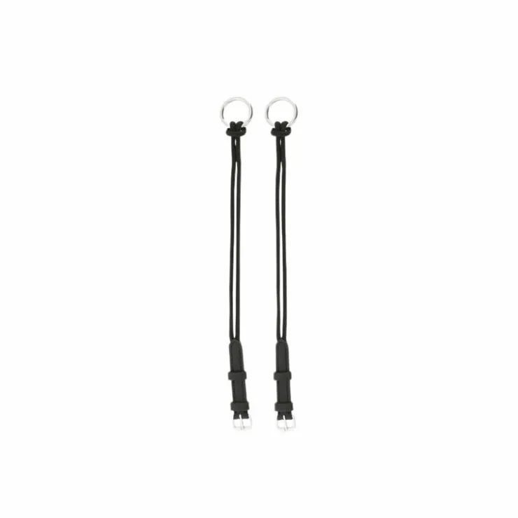- En corde double épaisseur amovible par nœud coulissant sur anneau inox de fixation de rêne