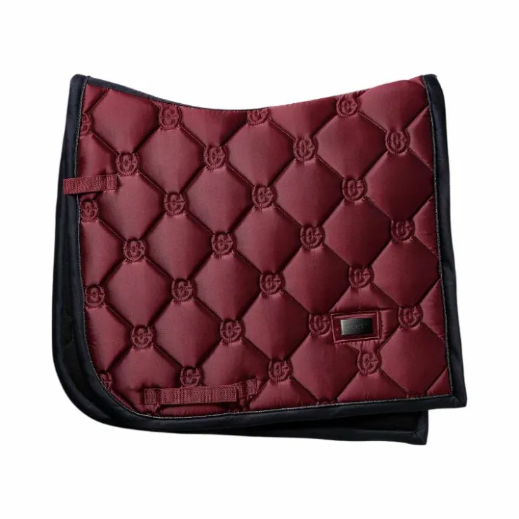 • Tapis de dressage Modern Twill Luxe rouge foncé avec des détails bleu marine